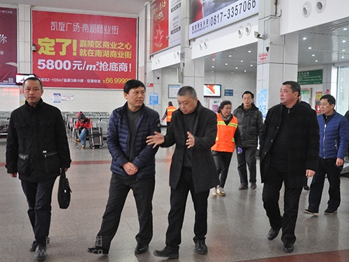 省運(yùn)管局副局長張洪(左二)在車站候車廳檢查