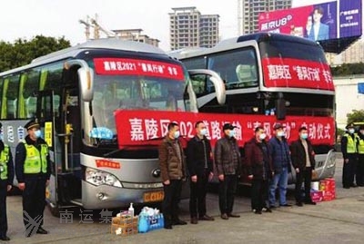 1月28日,2021年春運第一天,嘉陵區(qū)“春風行動”首發(fā)專車從南充汽車客運站駛出。此次首發(fā)專車共2臺,將分別趕赴廣東省東莞市和湖南省長沙市,為近40名返鄉(xiāng)農民工提供從廠門到家門,點到點、一站式運輸服務。 發(fā)車前,南充汽車客運站工作人員對車輛內外進行了全面噴灑消毒,每臺車上均按要求配備了口罩、體溫檢測儀、免洗洗手液、消毒液等防控物資,全程為農民工免費提供方便食品和礦泉水。 “我們要求專車駕駛員嚴格執(zhí)行‘六嚴禁’相關規(guī)定,運輸過程中不得超速、超載、疲勞駕駛,同時為農民工做好服務工作,確保農民工安全、舒心返鄉(xiāng)。”據(jù)區(qū)交通運輸局相關負責人介紹,返鄉(xiāng)農民工需要持7天內的核酸檢測報告乘車,在上車前堅持做好體溫檢測、查驗健康碼,使用“川行通”進行乘客信息登記,運行中司乘人員務必全程佩戴口罩,每4小時對車輛進行通風消毒,全程按照規(guī)定線路運行,途中不得上下乘客,確保農民工健康返鄉(xiāng)。 (張權) ——摘自《南充日報》
