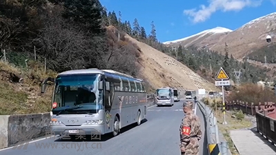 保障隊伍行進在川藏高原上