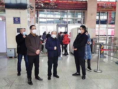 市交通運(yùn)輸局黨委委員、副局長(zhǎng)蔣勇(左二)在營山汽車客運(yùn)站檢查春運(yùn)工作。