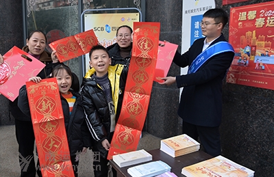 年味漸進,為營造春節(jié)氛圍,1月20日上午,南充市城北汽車客運站為務(wù)工人員返鄉(xiāng)回家過年的旅客送“福袋”。 據(jù)悉,“福袋”里有窗花、對聯(lián)、紅包,旅客在購票排隊領(lǐng)取車站派送的新春禮物“福袋”!皼]想到剛抵達城北汽車站,就收到驚喜。”一位從廣州返鄉(xiāng)的南充籍務(wù)工人員如是說。 目前正值外出務(wù)工人員返鄉(xiāng)的高峰期,該站特準(zhǔn)備“福袋”作為禮物送給旅客,讓他們帶“福”回家過年。當(dāng)天,該站免費送出“福袋”200多份,受到旅客點贊。 (城北汽車客運站 羅雪)