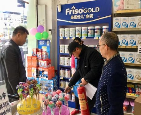鴻運實業(yè)分公司消防安全員為經(jīng)營戶講解滅火器的正確使用方法