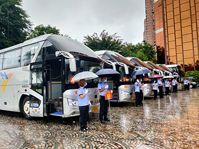 7月28日下午至7月31日上午,南運集團高坪分公司抽調(diào)6臺豪華大巴圓滿完成高坪區(qū)人大六屆五次會議202名人大代表的運輸保障任務(wù)。這是由高坪分公司單獨全面承接大型會議公務(wù)用車任務(wù)的第一次。 為承接這次運輸任務(wù),兩個月前分公司經(jīng)理李曉軍帶領(lǐng)相關(guān)人員,攜帶公司新購全資公車圖片及專業(yè)運輸團隊的管理資料,多次與人大等相關(guān)部門銜接,積極尋求人大支持。通過努力,7月25日,高坪分公司終于接到了高坪區(qū)人大公務(wù)用車通知。 分公司領(lǐng)導(dǎo)高度重視,立即組織相關(guān)人員召開安全優(yōu)質(zhì)服務(wù)運輸保障專題會,分別成立了會議用車運輸保障組和后勤服務(wù)組,并要求參加運輸任務(wù)的全體人員,一是認真按上級管理部門和集團公司王董事長的要求抓好疫情防控的工作。二是靠前指揮,并安排副經(jīng)理文浩每天堅守全程管理。三是抽調(diào)綜合素質(zhì)高,駕駛技術(shù)過硬的公車駕駛員參與運輸。四是抽調(diào)綜合素質(zhì)好、形象氣質(zhì)佳的女員工參與服務(wù)工作。五是運輸任務(wù)前抽調(diào)各科室人員對車輛內(nèi)外進行全面清潔,并在每次人大代表下車后及時打掃車輛衛(wèi)生和消毒。六是完成當(dāng)天的運輸保障服務(wù)后要總結(jié)經(jīng)驗,查找差距和不足,不斷完善和提高服務(wù)質(zhì)量。 7月31日12時,隨著該司最后一輛滿載著人大代表的大巴從高坪區(qū)文化藝術(shù)中心回到天來大酒店,標(biāo)志著人大代表運輸保障任務(wù)圓滿地畫上了句號。四天會議期間,無論烈日當(dāng)空還是暴雨突降,全體駕駛員及服務(wù)人員均認真負責(zé),堅守崗位,堅持為代表們提供安全溫馨的服務(wù)。特別是7月31日上午人大代表在天來酒店上車時突降大雨,該司的乘務(wù)工作人員多趟次為未攜帶雨傘的人大代表撐傘避雨,受到了人大代表們的一致好評。在下午召開的區(qū)人大會議保障組總結(jié)會上,相關(guān)領(lǐng)導(dǎo)對高坪分公司提供的保障車輛及運輸服務(wù)給予充分肯定,并表示今后在公務(wù)用車方面將與南運集團高坪分公司開展全面的合作。 據(jù)悉,7月28日上午至7月30日上午南運集團高速客運分公司抽調(diào)6臺豪華大巴,圓滿完成高坪區(qū)政協(xié)六屆四次會議199名政協(xié)代表的運輸保障任務(wù),受到點贊。 (陳昭明 蘭雪琳 任小平)