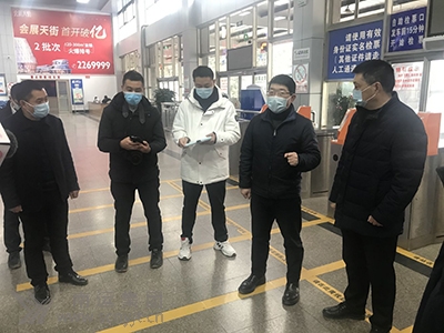 嘉陵區(qū)委副書(shū)記、區(qū)長(zhǎng)張青松(右二)在南充汽車(chē)客運(yùn)站檢查指導(dǎo)工作。
