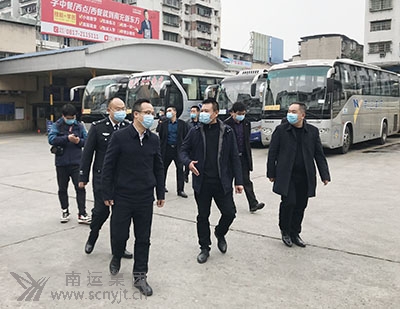 順慶區(qū)委副書記、代理區(qū)長唐粼波(左三)深入南充市城北汽車客運站檢查春運安全和疫情防控工作。