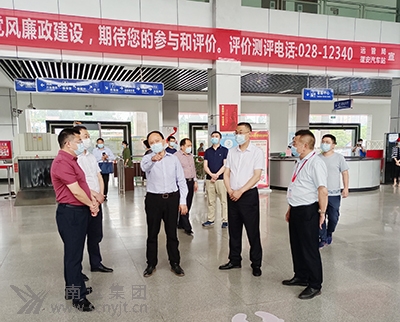 中共南充市委常委、市總工會(huì)主席李在偉(左四)到蓬安汽車客運(yùn)站檢查安全及防疫工作。