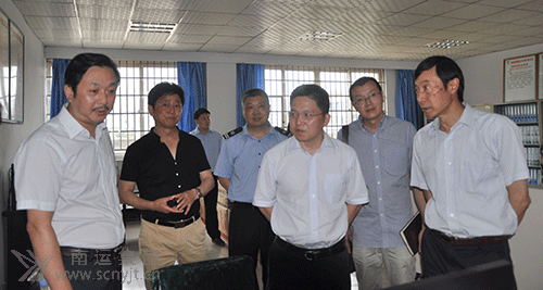 省運管局局長王波(左三)在南充汽車客運站檢查汛期安全工作 省運管局局長王波在南充汽車客運站查閱旅客行包安檢資料