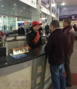 “匡紅艷愛(ài)心班”小紅帽正在耐心的解答旅客提出的問(wèn)題