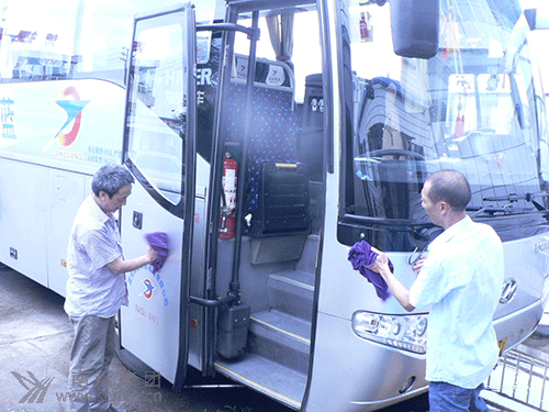 6月30日下午,藍(lán)光公司員工王會林、楊林二位同志頂著烈日、揮汗如雨、不辭辛勞、心甘情愿地為旅游車輛甘當(dāng)“美容師”。經(jīng)過他倆兩個多小時努力的打掃,整臺車輛是一塵不染、煥然一新。